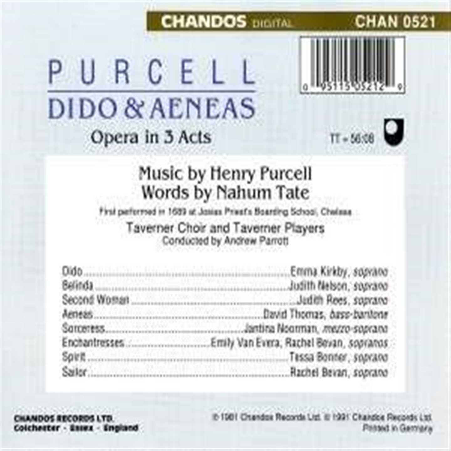 Barcode: 0095115052129 / Cat: CHAN 0521 / 2 CD / Label: CHANDOS RECORDS