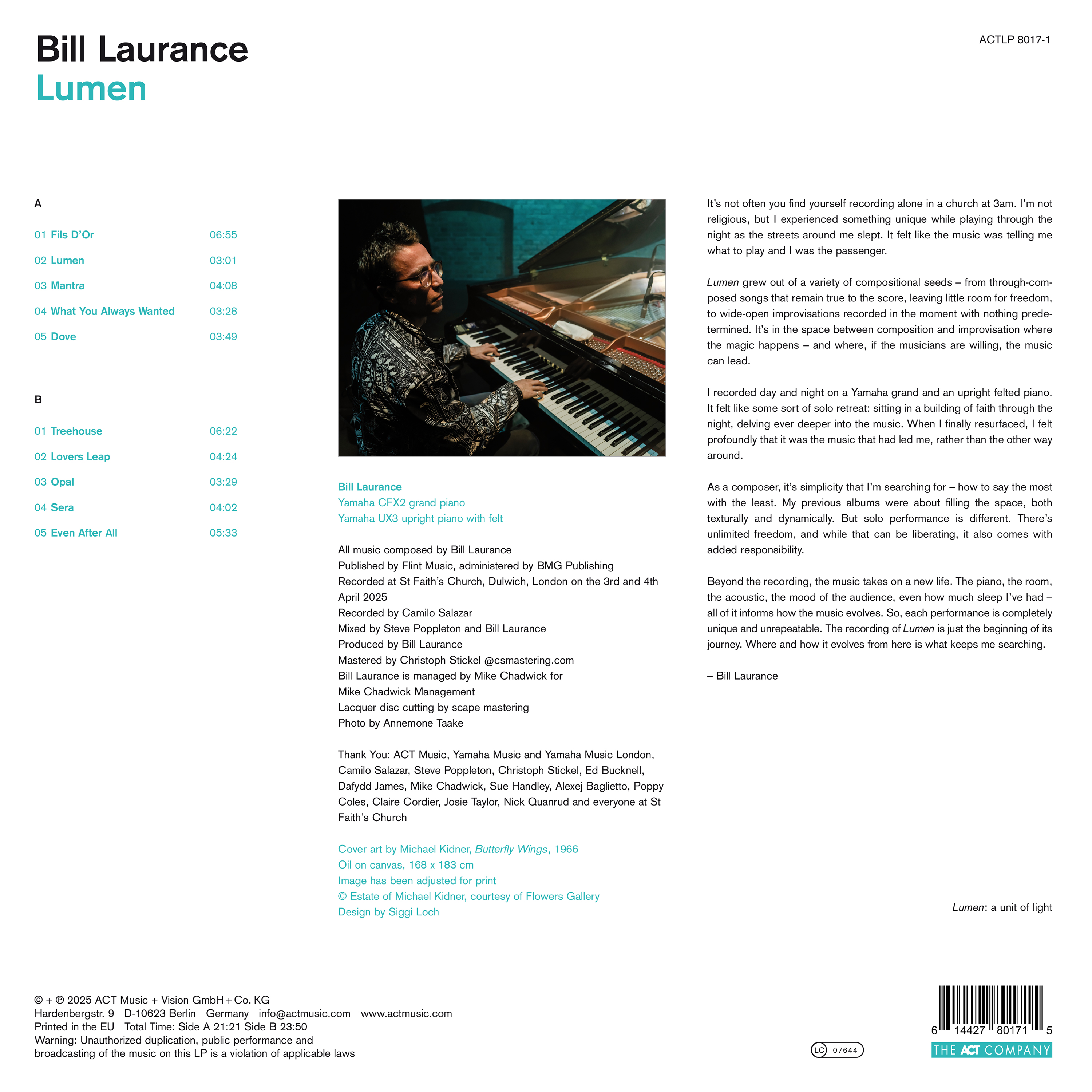 Al di là della registrazione, la musica assume una nuova vita. Il pianoforte, la stanza, l'acustica, l'umore del pubblico, persino la quantità di sonno che ho avuto: tutto questo influenza l'evoluzione della musica. Quindi, ogni performance è completamente unica e irripetibile. La registrazione di Lumen è solo l'inizio del suo viaggio. Dove e come si evolverà da qui in poi è ciò che mi spinge a cercare. - Bill Laurance