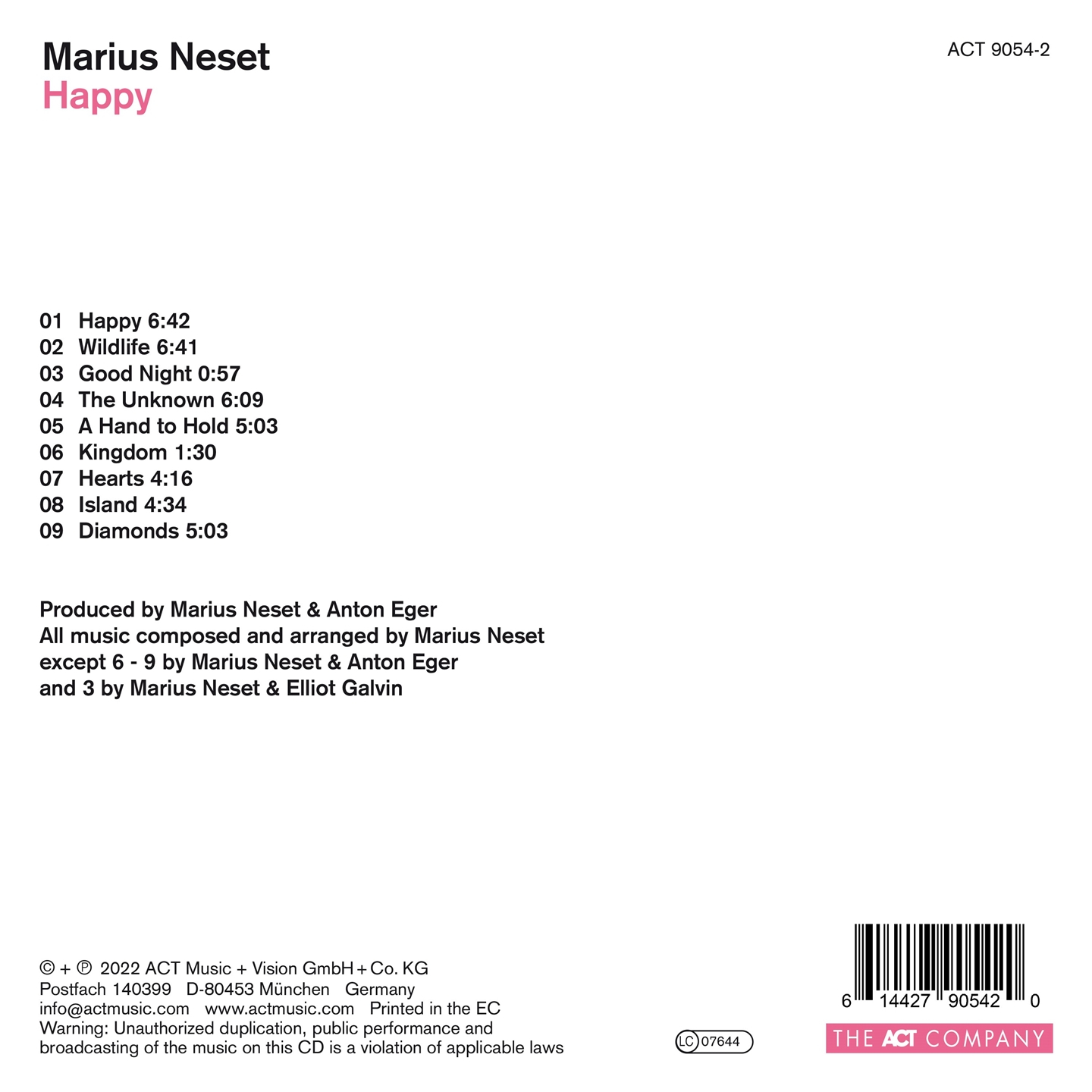 Il sassofonista tenore norvegese Marius Neset è uno dei compositori più affascinanti e versatili del jazz e non solo - cosa che, tra le altre, oggi lo conduce fino alla Royal Albert Hall di Londra. Downbeat afferma: "Marius Neset non è il futuro, ma il presente del jazz europeo". L'album "Happy" presenta Neset con un nuovo quintetto di prima classe. L'album è diviso in due parti: nella prima metà dominano le canzoni giocose, intricate ed energiche. E nella seconda parte, Neset & Band portano gli ascoltatori in una suite più tranquilla. Ciò che tutti i brani hanno in comune è la pura gioia, che si può percepire, dei musicisti di suonare ogni nota.