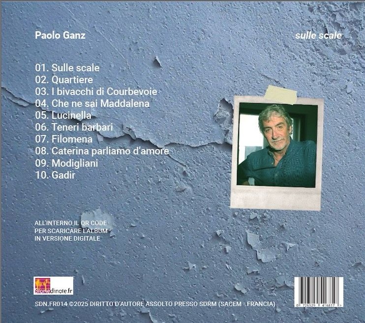 scrittore di lungo corso. "Sulle Scale", questo il titolo del nuovo CDpubblicato ancora una volta da Storie di Note, riconferma una scrittura letteraria e musicale di rara profondità. Rispetto al precedente "Borges, Atahualpa e le Magiche Lune" (Storie di Note FR10 – 2022) lo strumentario è più asciutto e resi più intimi gli arrangiamenti, nella ricerca di definire un vero e proprio chansonnier dei nostri giorni. Il titolo del CD, così come il brano omonimo, è un vero e proprio programma della narrazione. Salendo le scale – infatti – si