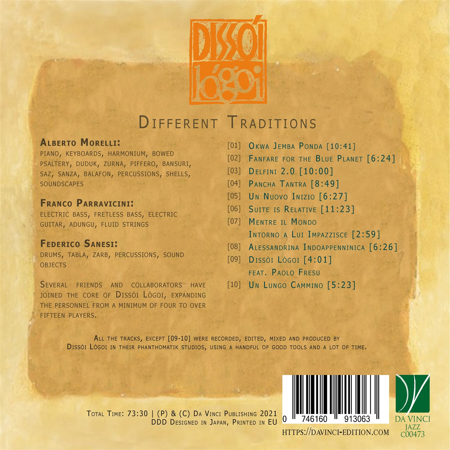 In continuità con i precedenti progetti Different Traditions, l'ultimo lavoro di Dissòi Lògoi, si muove nella tradizione della sintesi di stili, timbri e linguaggi compositivi, fuori dagli schemi consueti. Parte di questo progetto è costituito da composizioni realizzate negli ultimi quattro anni, alcune delle quali strutturate come suite. Tra questi vi è un arrangiamento, in forma di medley, di alcune composizioni tratte dalla “Relativity Suite” di Don Cherry. Una seconda parte contiene brani composti e registrati tra il 1979 e il 2011, mai pubblicati, che rappresentano momenti significativi del percorso creativo di Dissòi Lògoi.