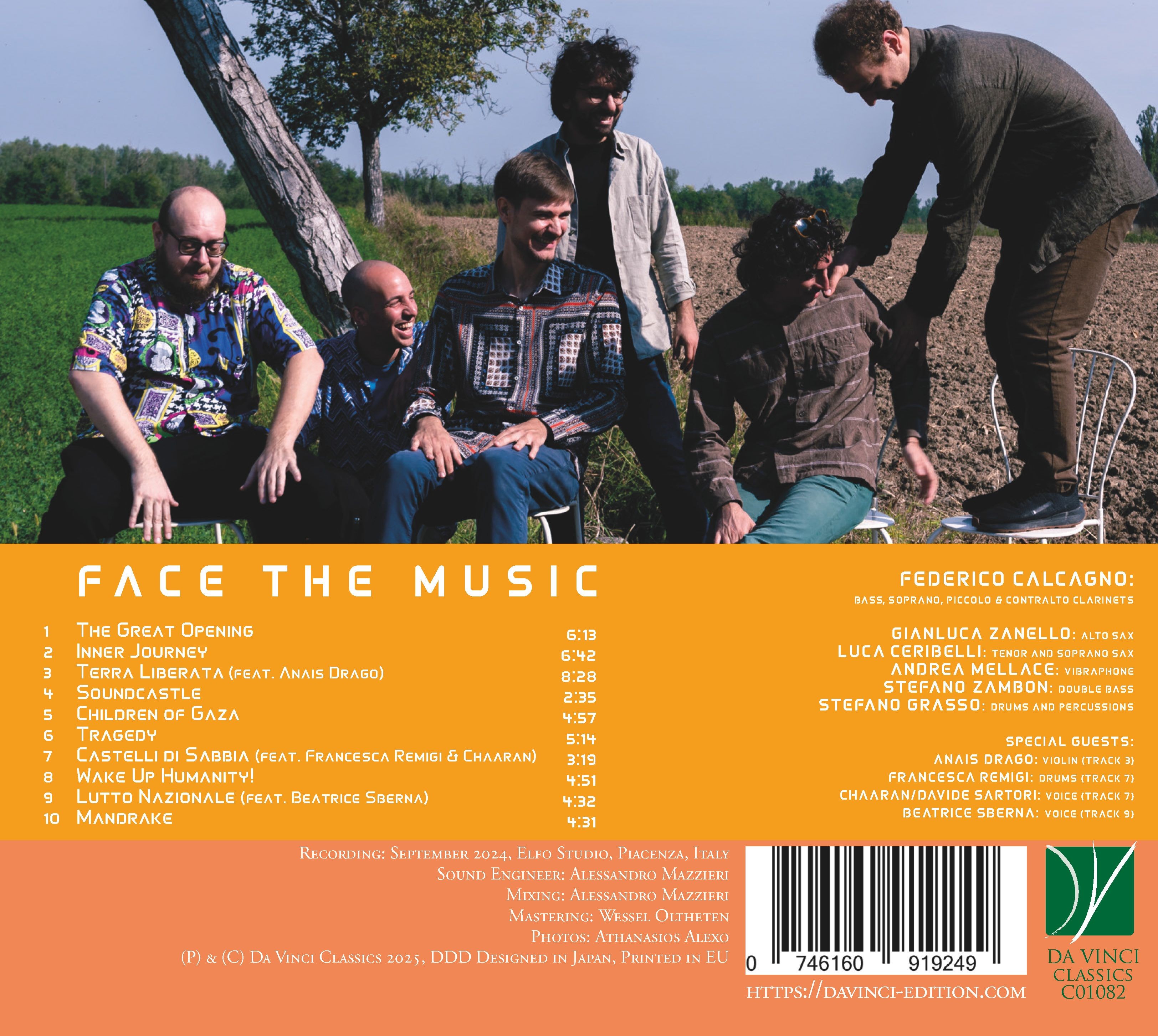 Con "Face the Music", il clarinettista Federico Calcagno & The Dolphins firmano un manifesto lucido e coraggioso di jazz contemporaneo. Registrato a Piacenza nel 2024, l’album vive di improvvisazione narrativa: i temi si aprono in dialoghi collettivi, i groove mutano traiettoria, i silenzi respirano. Jazz europeo, ricerca d’avanguardia e cromie mediterranee nutrono una scrittura rigorosa eppure viva. La registrazione, nitida e ravvicinata, privilegia l’intesa allo sfoggio: i motivi migrano, le metriche si inclinano, le trame fioriscono da unisoni sospesi a poliritmici dinamici. La scrittura guarda alla tradizione europea senza citazionismi, cercando un presente insieme riflessivo e propulsivo. È un jazz che pensa e sente, irrequieto e melodico, un vero manifesto di libertà e ascolto consapevole.