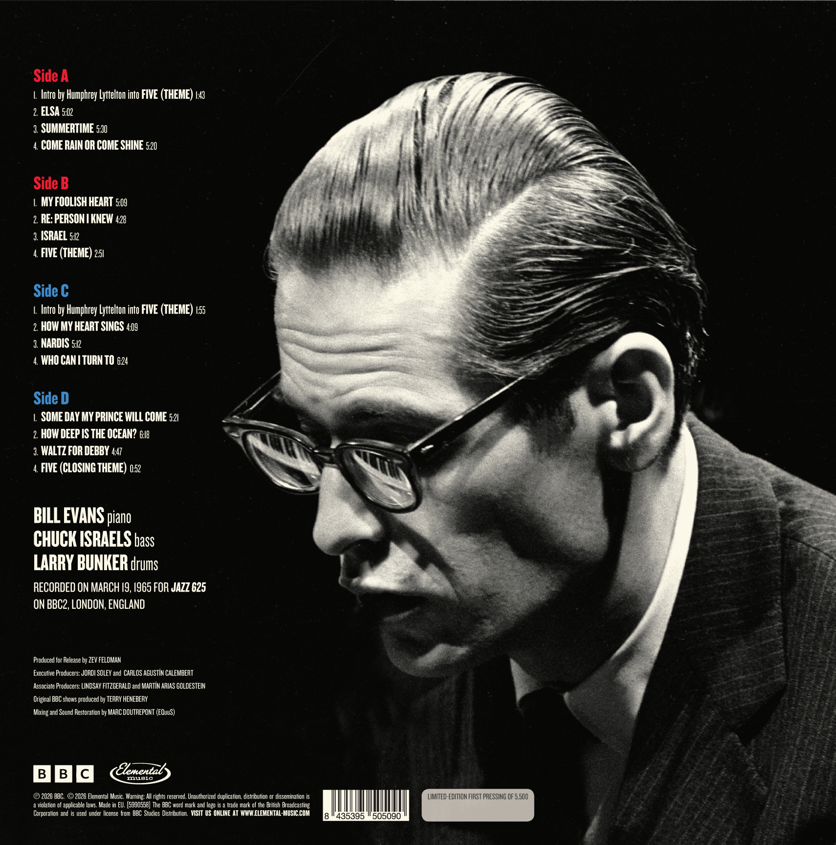 At the BBC - The Complete 1965 London Sets รจ la prima pubblicazione ufficiale dello storico spettacolo Jazz 625 al BBC Television Theatre, Shepherd's Bush, il 19 marzo 1965 del Bill Evans Trio. Trasferito dalle bobine originali della BBC e restaurato e masterizzato da Matthew Lutthans presso The Mastering Lab. Il disco, in edizione limitata da 180 grammi, include un ampio inserto con rare fotografie dello spettacolo e note di copertina dell'acclamato critico e autore di jazz Marc Myers.