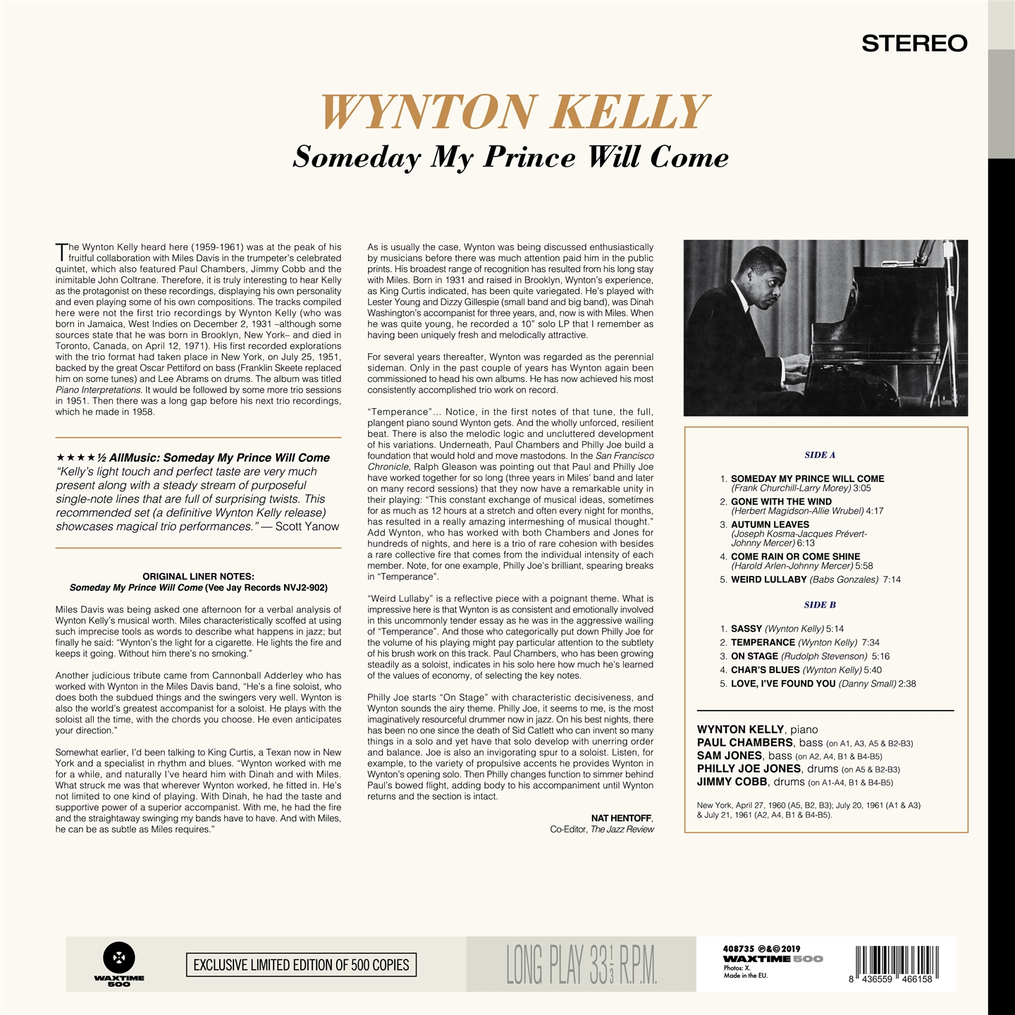 Questo vinile presenta il classico album del pianista Wynton Kelly “Someday My Prince Will Come” in un’edizione a tiratura limitata. L’album vede il pianista in trio con Paul Chambers e Sam Jones al contrabbasso e Philly Joe Jones o Jimmy Cobb alla batteria. Il Wynton Kelly ascoltato qui (1959-1961) era all'apice della fruttuosa collaborazione con Miles Davis nel celebre quintetto che comprendeva anche Paul Chambers, Jimmy Cobb e John Coltrane. Pertanto, è davvero interessante ascoltare Kelly come protagonista di queste registrazioni in cui ha modo di esprimere tutta la sua personalità e anche la sua abilità come compositore.