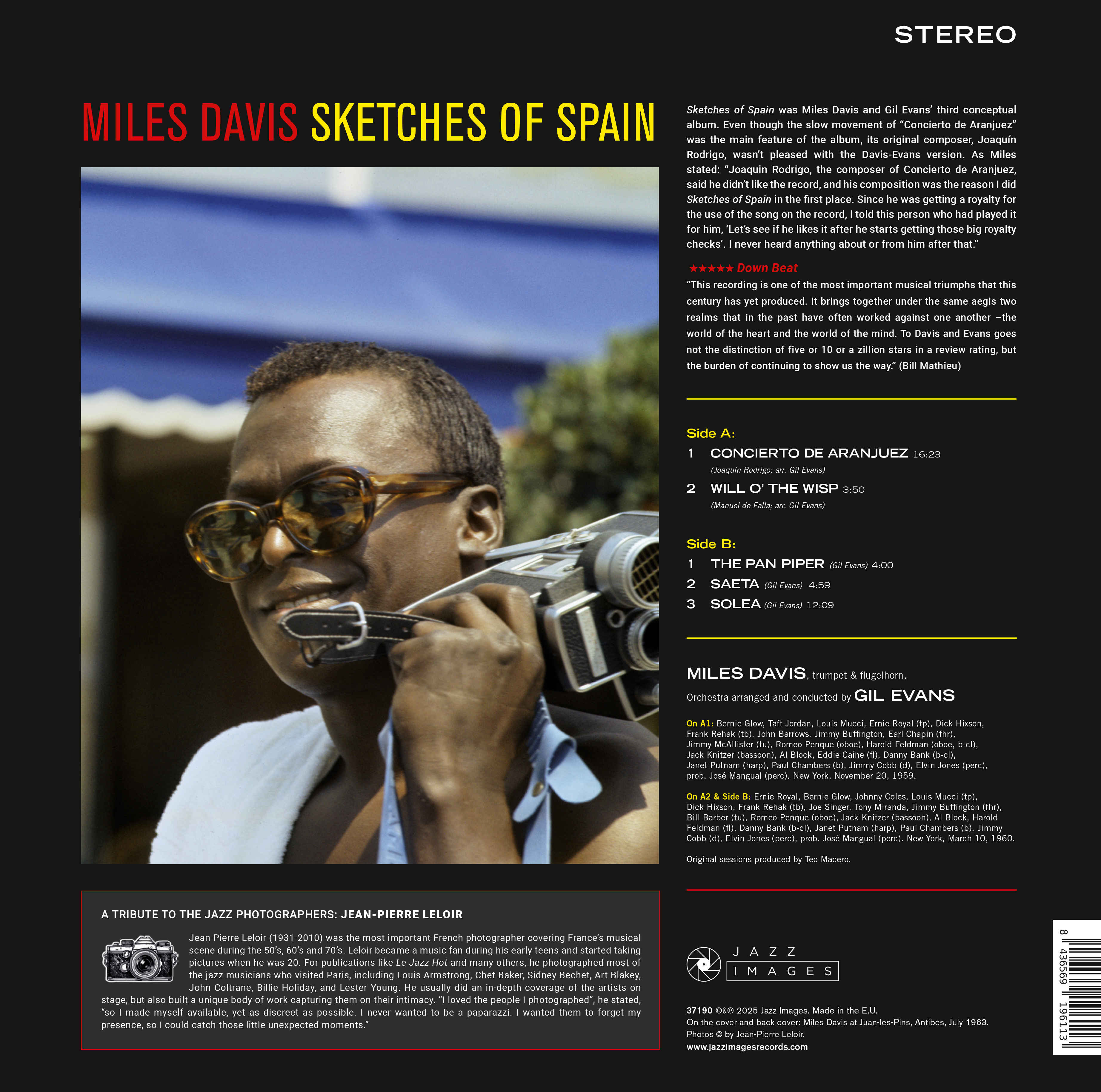 "Sketches of Spain" fu il terzo album concettuale di Miles Davis e Gil Evans e includeva un superbo arrangiamento di Evans del "Concierto de Aranjuez" di Joaquín Rodrigo. Il recensore del Down Beat contemporaneo Bill Mathieu assegnò all'album cinque stelle, affermando che si trattava di "uno dei più importanti trionfi musicali che questo secolo abbia mai prodotto. Riunisce sotto la stessa egida due regni che in passato hanno spesso lavorato l'uno contro l'altro: il mondo del cuore e quello della mente". Edizione speciale con foto di copertina e retro copertina di Jean-Pierre Leloir (1931-2010), che ha catturato alcune delle immagini più iconiche della vita jazzistica in Francia durante gli anni Cinquanta e Sessanta.